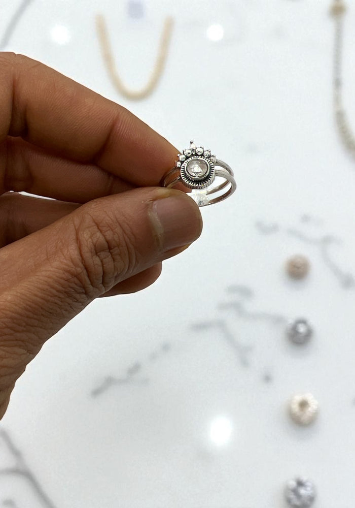 Anillo Corona de Plata con Zirconia Cristal - Talla 15