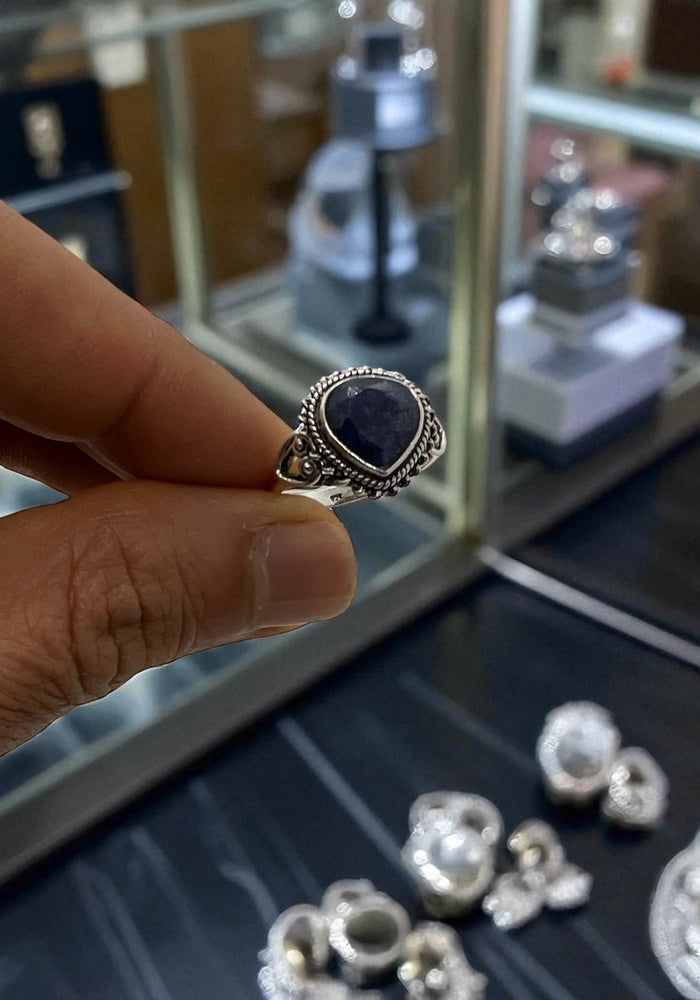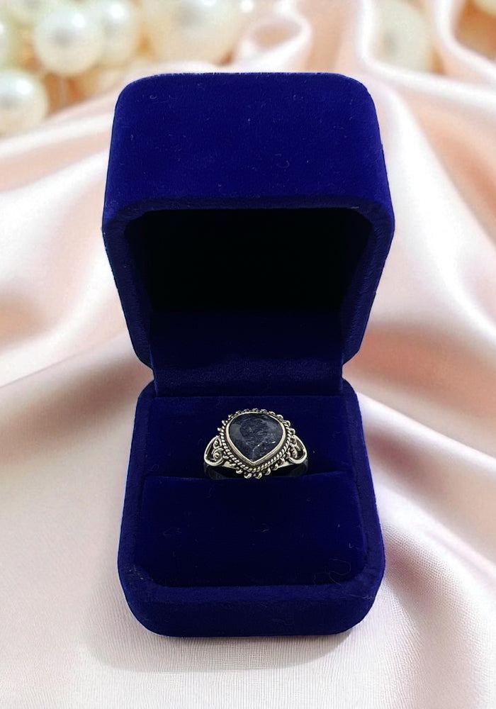 Anillo en plata con zafiro natural en forma de corazón - Talla 18