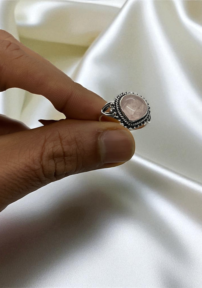 Anillo de Plata con Cuarzo Rosa - Talla 12