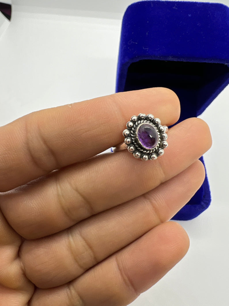 Anillo de Plata 925 con Amatista Oval – Talla 14