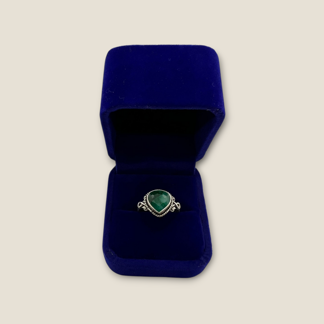 Anillo de Plata 925 con Esmeralda en Forma de Corazón – Talla 19