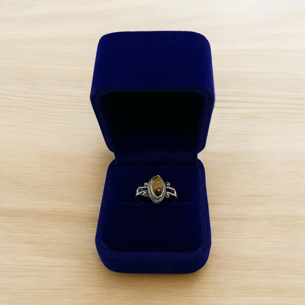 Anillo de plata con piedra ojo de tigre ovalado - talla 16