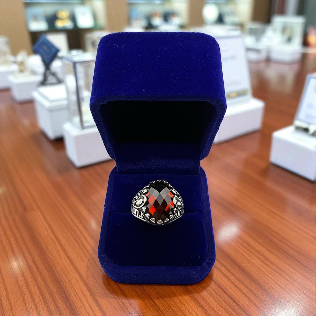 Anillo turco en plata con circon rojo facetado - Talla 25