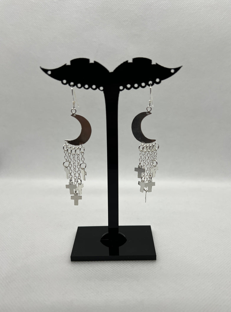 Aro de Plata 925 con Forma de Luna y Colgante de Cruz